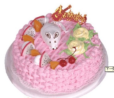 相關知識:圓形鮮奶蛋糕,時令水果裝飾,中間一只小老鼠