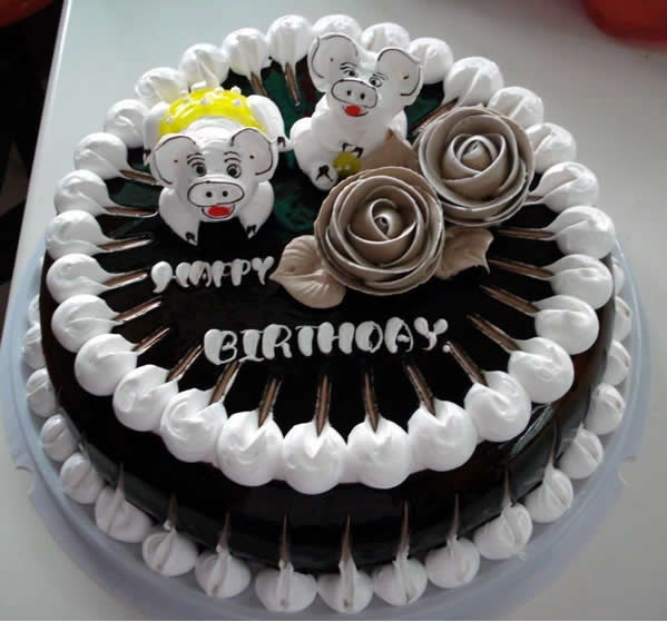 商品簡介:巧克力蛋糕,上加小豬裝飾