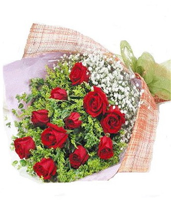 商品簡介:紅玫瑰11枝 滿天星 商品包裝:配高檔皺紋紙包裝
