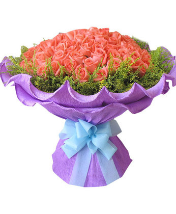粉玫瑰50枝 黃鶯 商品包裝:紫色卷國紙圓形包裝