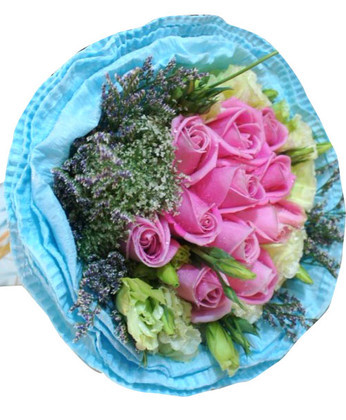 紫玫瑰11枝 洋桔梗9枝 情人草 商品包裝:皺紋紙單面包裝