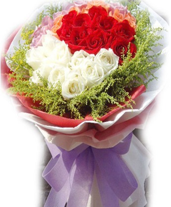 商品簡介:紅玫瑰11枝 粉玫瑰11枝 白玫瑰11枝 黃鶯(配花) 商品包裝:粉色皺紋紙及淺色皺紋紙包圓形