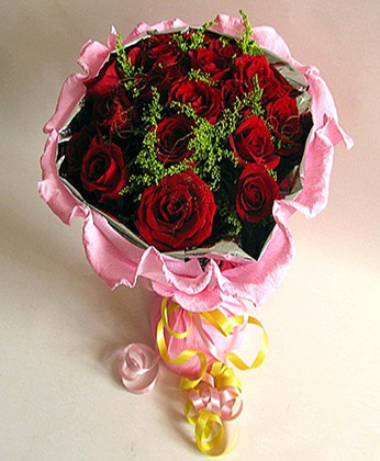 商品簡介:紅玫瑰19枝 黃鶯 商品包裝:粉色卷邊紙包裝