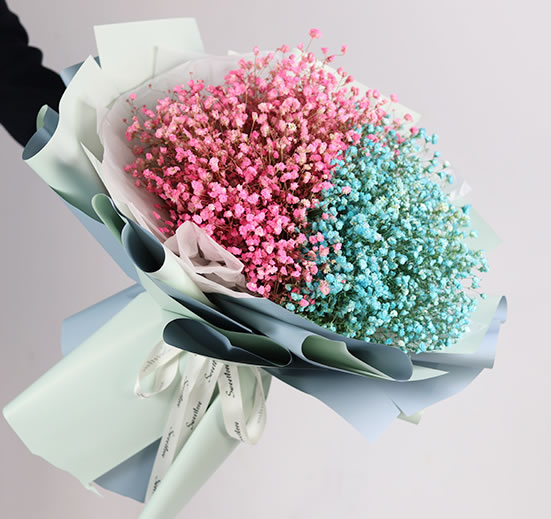 紅粉白色滿天星3扎,皺紋紙圓形包裝,豐滿包裝。