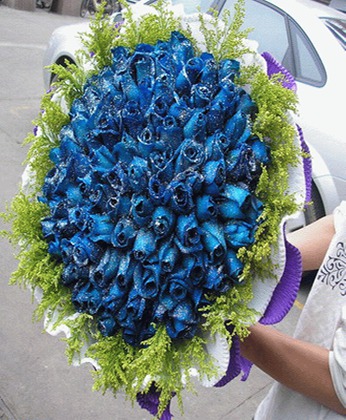 商品簡介:藍玫瑰111枝 黃鶯 商品包裝:兩層卷邊紙高檔包裝