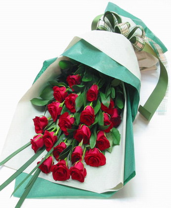 商品簡介:紅玫瑰21枝 綠葉 黃鶯 商品包裝:皺紋紙單面包裝