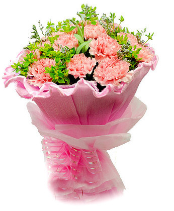 商品簡介:粉色康乃馨19枝 滿天星 商品包裝:粉色卷邊紙包圓形