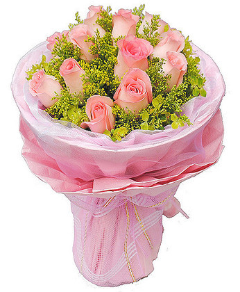 商品簡介:粉玫瑰11枝 黃鶯 商品包裝:粉色皺紋紙及粉色風紗圓形包裝