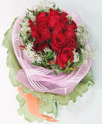 商品簡介:紅玫瑰19枝 商品包裝:內襯網紗,荷葉邊皺紋紙包裝,圓形花束