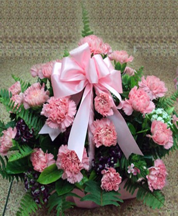商品簡介:粉色康乃馨29枝 滿天星(配花) 排草(配花) 滿天星(配花) 黃鶯(配花) 勿忘我(配花) 商品包裝:粉色大蝴蝶結,精美花籃