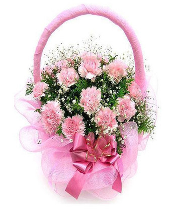 商品簡介:粉色康乃馨36枝滿天星黃鶯商品包裝:精美小花籃