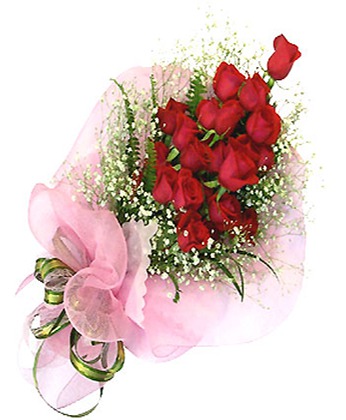 紅玫瑰19枝 滿天星 綠葉 商品包裝:網(wǎng)紗扇形包裝