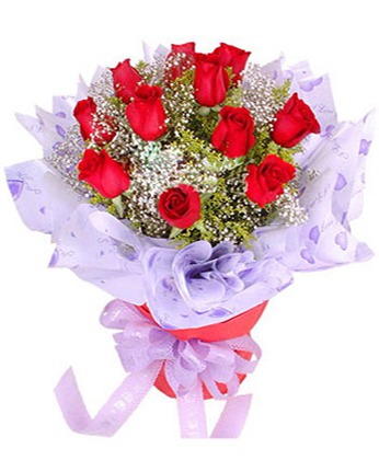紅玫瑰11枝 滿天星 綠葉 商品包裝:皺紋紙圓形包裝