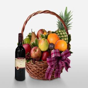 果籃鮮花紅酒時(shí)令水果