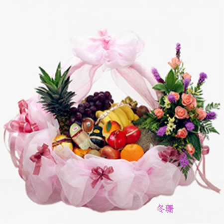 商品簡介:[材 料]:花束, 粉玫瑰 蘋果橙子葡萄菠蘿火龍果彌猴桃(因季節(jié)原因如沒有將拿當(dāng)季水果代替)