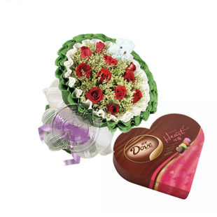 11枝紅玫瑰,小熊一個,109克德芙巧克力