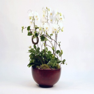 商品簡介:5株白色蝴蝶蘭配精致花盆一個(花盆樣式只供參考,以實物為準)