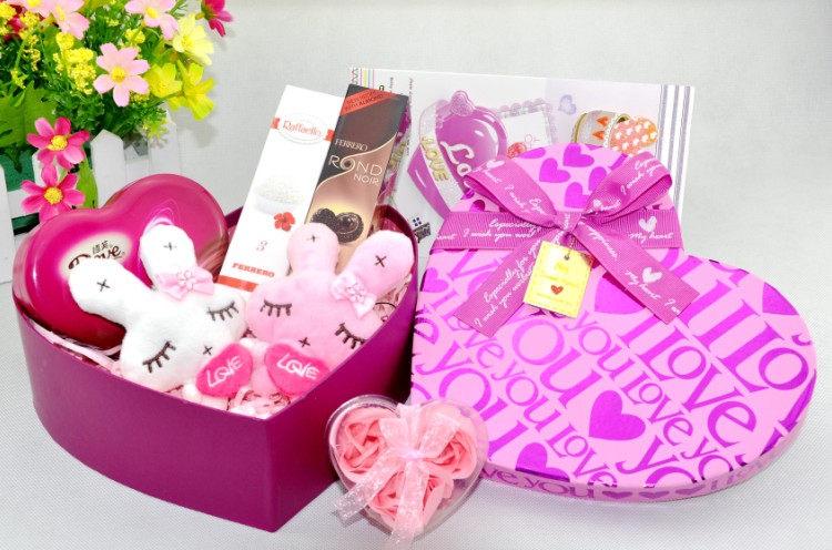 2條意大利進(jìn)口費(fèi)列羅(金莎、慕朗、拉斐爾三口味隨即一種) 1盒德芙心印巧克力(凈含量:53g) 可愛美麗兔公仔一對(duì) 中號(hào)精美禮盒+禮品袋 精美的玫瑰花禮盒(紅色與粉色隨機(jī)發(fā))