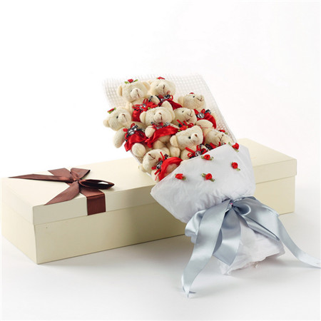 9只紅色小熊花束 白色包裝紙 銀色蝴蝶結包扎 高檔禮盒