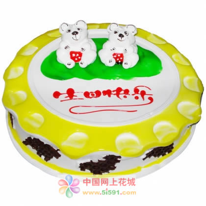 商品簡介:鮮奶果漿蛋糕,中間白色小熊一對,周邊黃色果漿。外圍巧克力屑點綴