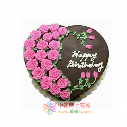 商品簡介:心形巧克力蛋糕,粉紅色奶油花裝飾