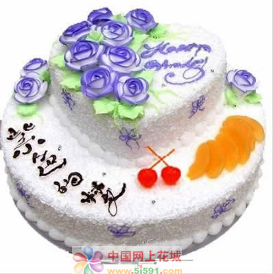 商品簡介:圓形雙層蛋糕,中間夾心水果,表面玫瑰裝飾,蛋糕尺寸:10寸+6寸