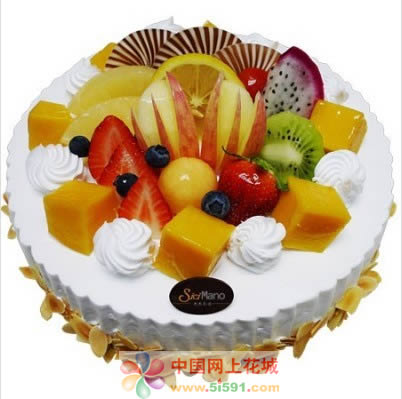 商品簡介:圓形水果蛋糕,中間夾有一層新鮮水果