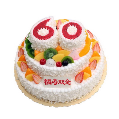 14寸+10寸+(4寸+4寸)三層祝壽圓形水果蛋糕
