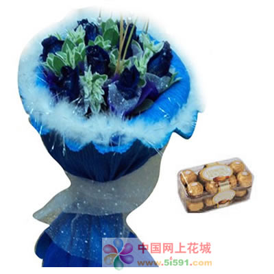| 材料包裝: | 藍玫瑰11枝 葉上花(配花);外加費列羅巧克力16粒裝,凈含量200G | | 相關花語: | 你相信緣分嗎?那是一種神秘又美麗的牽系,至于我們之間,我只想告訴你,我很珍惜 | | 配送范圍: | 本產品全國各地均可送達 | | 下單備注: | 鮮花產品您至少應提前3小時下訂單,我們保證按時送達; 為了能夠有充分的時間準備,我們建議您提前預訂!。 | | 質量說明: | 由于各個藝師手藝不同,實際送出的鮮花商品有部分可能和圖片不太一樣,也屬正常,但本站承諾,數量和種類一定和圖片上一樣,并且比圖片上的還要好。