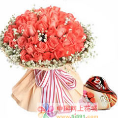 商品簡介:99枝粉玫瑰,滿天星搭配;外加德芙巧克力109克