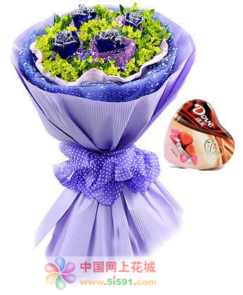 藍玫瑰4枝 葉上黃金;外加德芙巧克力109克