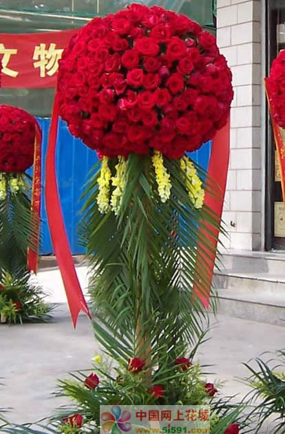 材料包裝: 300支玫瑰,洋蘭,劍蘭 各種輔葉 商品包裝:雙層2.2米高花籃 開業(yè)花籃