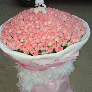 商品簡(jiǎn)介:520支粉玫瑰 加一支小熊 粉色棉紙包裝