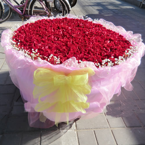 | 材料包裝: | 520支玫瑰 滿天星圍邊 粉色紗紙包裝 | | 相關花語: | 心中有一份牽掛,款款捎給遠方的你,愿快樂永與你相伴!