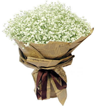 滿天星一大扎,滿天星是花束唯一和所有的花材; 包 裝: 經典米色舊報紙手揉紙圓形包裝,深咖啡色絲絲帶花結