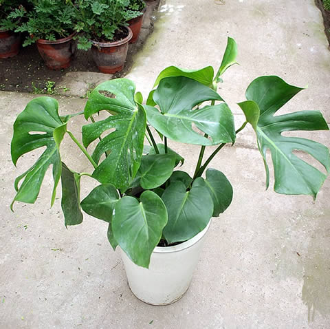 材料包裝: 龜背竹為常綠藤本植物,莖粗壯。幼葉心形無孔,長大后成廣卵形、羽狀深裂,葉脈間有橢圓形的穿孔,葉具長柄,深綠色。佛焰花序,佛焰苞舟形,11月開花,淡黃色。龜背竹又名“蓬萊蕉”、“電線草”,是天南星科常綠攀援觀葉植物,莖干上著生有褐色的氣根,形如電線,故名“電線草”葉卵圓形,在羽狀的葉脈間呈龜甲形散布許多長圓形的孔洞和深裂,其形狀似龜甲圖案,莖有節似竹干,故名“龜背竹”。肉穗花序,整個花形好像“臺燈”,有燈罩和燈泡,原產墨西哥熱帶雨林中,性喜溫暖、濕潤環境,忌陽光直射,不耐寒,我國北方均作室內盆栽。(盆以當地分店實物為準)