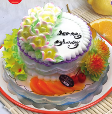 商品簡介:8+12寸。雙層鮮奶水果蛋糕。
