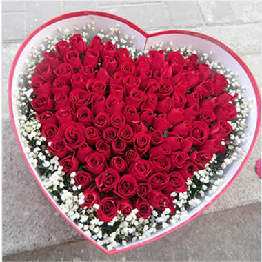 商品簡介:99朵紅玫瑰鮮花心形禮盒