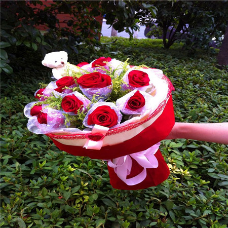 | 材料包裝: | 11枝紅玫瑰獨立包裝+1只小熊,黃英間插豐滿。 商品包裝:白色紗網內襯紅色瓦楞紙包裝,粉色彩帶束扎 | | 相關花語: | 物換星移,不會為我們停留,唯有你我的愛情,永藏在心的深處,祝你生日快樂! | | 配送范圍: | 本產品全國各地均可送達 | | 下單備注: | 鮮花產品您至少應提前3小時下訂單,我們保證按時送達; 為了能夠有充分的時間準備,我們建議您提前預訂!。 | | 質量說明: | 由于各個藝師手藝不同,實際送出的鮮花商品有部分可能和圖片不太一樣,也屬正常,但本站承諾,數量和種類一定和圖片上一樣,并且比圖片上的還要好。