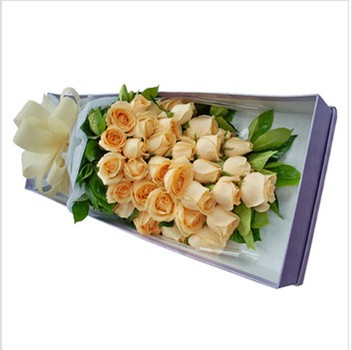 商品簡介:香檳玫瑰33枝 商品包裝:淡紫色精致禮盒包裝