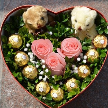 商品簡介:禮盒包裝,玫瑰花3朵,小熊兩個,9顆巧克力!禮盒顏色隨機挑選!