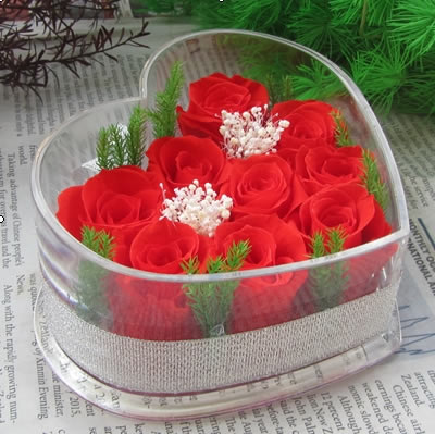 材料包裝: 包裝:進口亞克力盒子,2到3cm保鮮玫瑰花;石松、白萬星,外置絲帶;規格:11*8*6.5cm;花朵顏色選擇:紅,藍,黃,粉,粉紫;如有顏色要求,下單時務必備注選擇哪種顏色,如無備注則默認顏色發貨