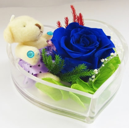 包裝:小熊公仔,4到5cm玫瑰,石松、白萬星、繡球;規格:10CM×10CM×5.5CM;花朵顏色選擇:紅,藍,黑,粉,翠綠,果綠;如有顏色要求,下單時務必備注選擇哪種顏色,如無備注則默認顏色發貨
