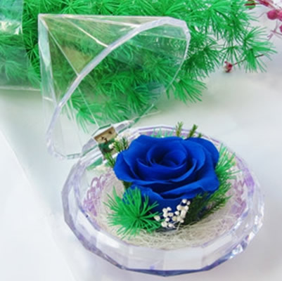 包裝:高級亞克力容器,一朵玫瑰,滿天星等;規格:9cm*9cm;顏色:藍色