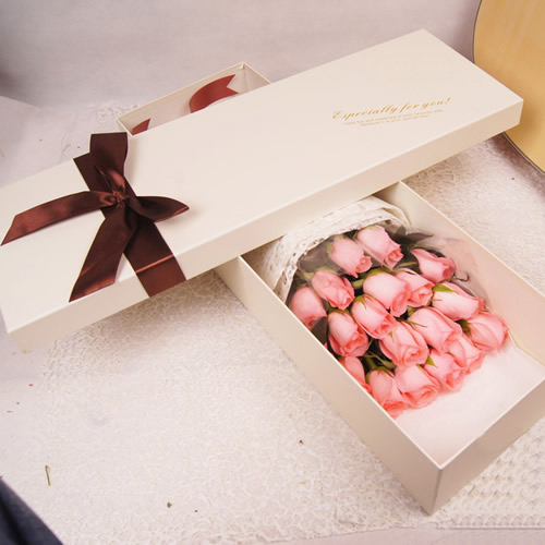 花材:19朵戴安娜粉玫瑰;包裝:白色高端禮盒裝。