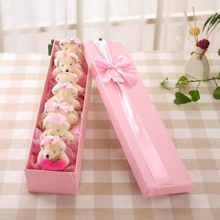 公仔數量:7只款式都不一樣的熊+禮盒材料:禮盒 熊 尺寸:熊高9CM,禮盒長47*寬10*高7CM