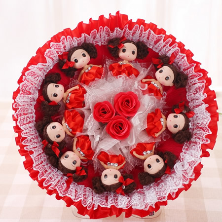 公仔數量:9只迷糊娃娃+3香皂花手捧 材料:香皂,霧光紙,紗網 尺寸:高45CM,直徑40CM