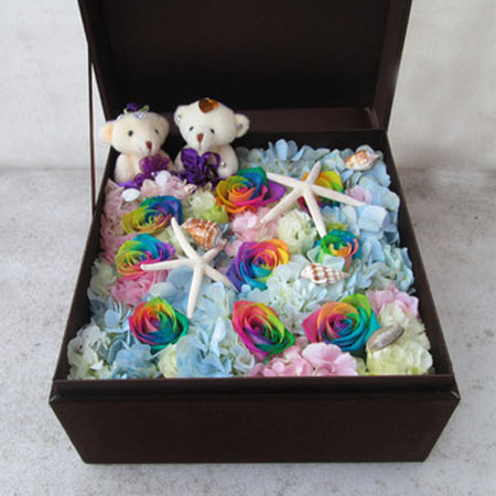商品簡介:貨走順豐快遞,賣家包郵,至少提前3-5天;花材:9朵彩虹玫瑰加2只小熊;包裝:冰袋,精美禮盒;發貨時間:每天下午4點前發貨,4點之后訂購的只能次日發貨