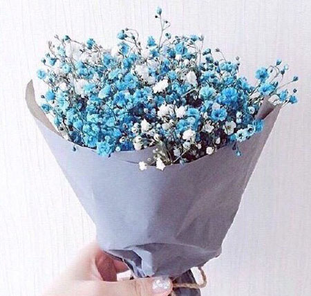 藍色滿天星花束+淡紫色包裝紙