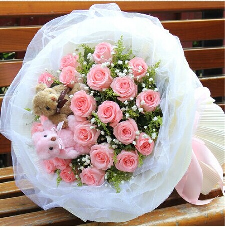 | 材料包裝: | 19枝粉玫瑰2只小熊 滿天星黃鶯搭配 白色紗網內襯 白色裙邊紙外包。粉色蝴蝶結扎尾 | | 相關花語: | 看到你,我怕觸電;看不到你,我需要充電;如果沒有你,我想我會斷電。愛你是我的職業,想你是我的事業,抱你是我的特長,吻你是我的專業! | | 配送范圍: | 本產品全國各地均可送達 | | 下單備注: | 鮮花產品您至少應提前3小時下訂單,我們保證按時送達; 為了能夠有充分的時間準備,我們建議您提前預訂!。 | | 質量說明: | 由于各個藝師手藝不同,實際送出的鮮花商品有部分可能和圖片不太一樣,也屬正常,但本站承諾,數量和種類一定和圖片上一樣,并且比圖片上的還要好。